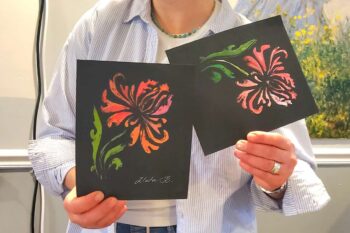 Good Morning Washington (ABC) interviewed AH7 owner-teacher Anne Browne and teacher Elaine Escobar live on Tue. July 29, encouraging people of all ages to create. Elaine demonstrated how to make gel plate prints as anchor Megan Clarke and lifestyle host Brian van de Graaf followed along. They made gorgeous prints in a matter of minutes. You can see the entire segment here—don’t miss it!