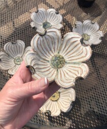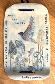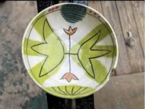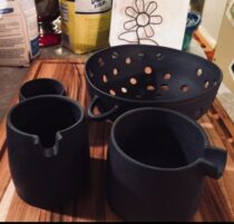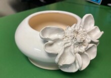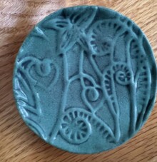 She has recently fallen in love with ceramics after many years of fiber arts and embroidery.