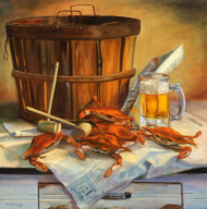Recent recognitions: Best in Show (see painting below at left); the Art League’s Open Exhibit April 2023; Director’s Choice Award in the AAU 2020 Spring Show; acceptance into AAU’s 2021 and 2022 Spring Show; and the Honorable Mention award at the 2017 Art League Student Show of Alexandria. Janice is also a member of the Art League of Alexandria, the Portrait Society of America, and Oil Painters of America.