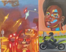 During her time of study at Millersville she gained a niche for painting people of color and experimenting with various color palettes. Tee currently works as a visual arts teacher at Washington-Liberty High School, where she teaches a variety of art, photography and ceramic courses.