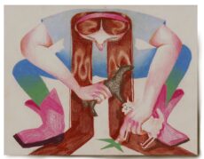 Screaming women, and scratching bed sheets, American-made, military brat, Dinah Polhemus delivers her take on Southern American culture. While using her life as a narrative compass in her work, she draws and paints T-U-F-F gals giving their all. Whether pouty eyes, or chunky knuckles, she uses oil, charcoal, and a skewed perspective to insert a humorous eye towards Americana.